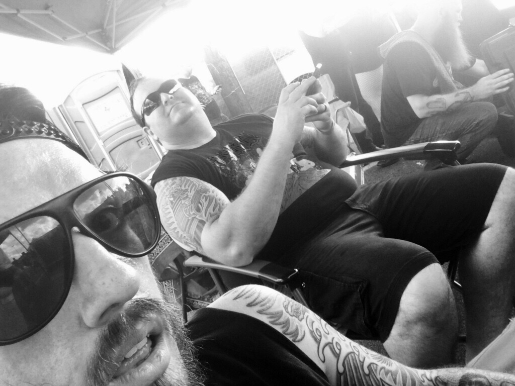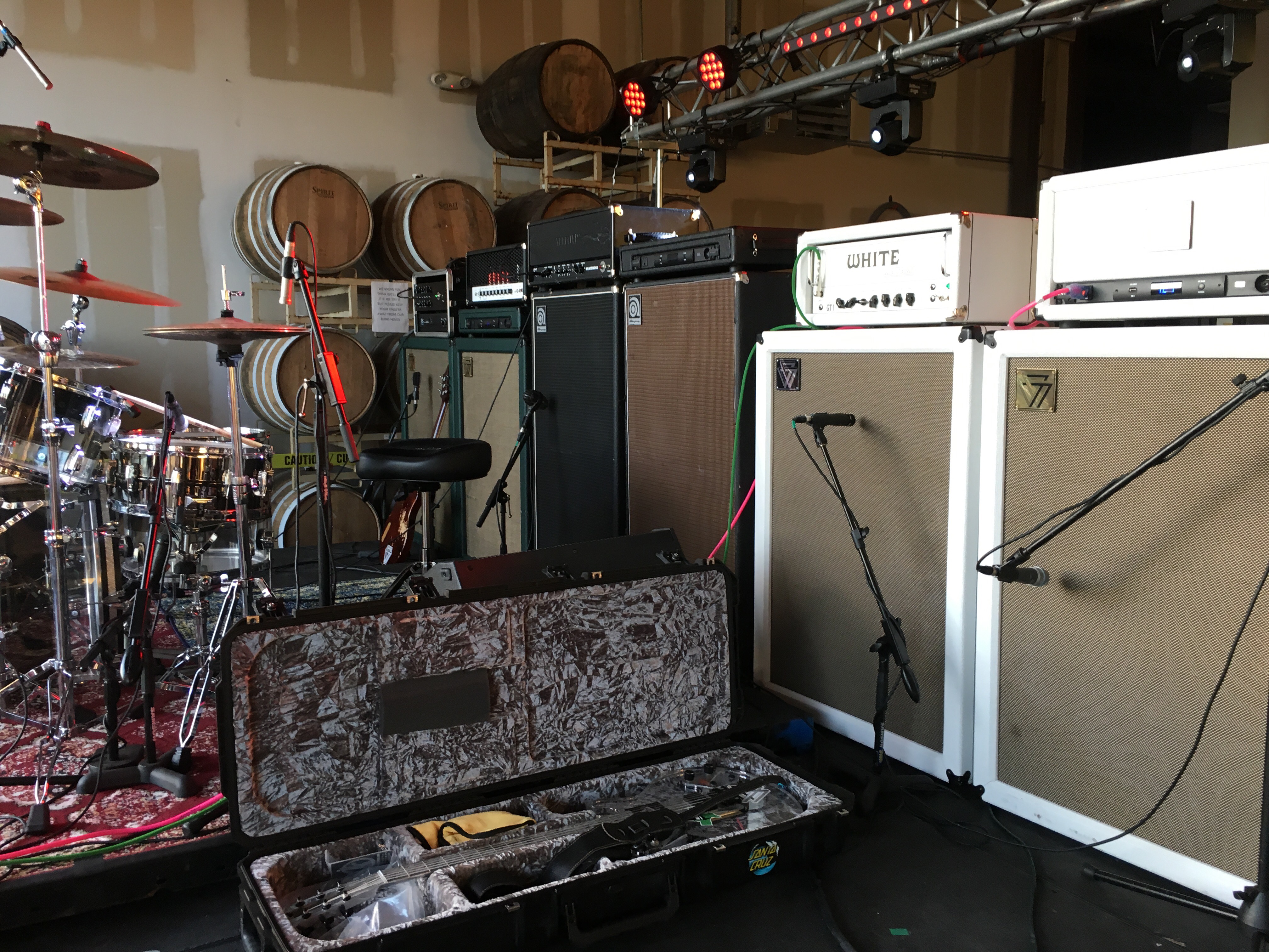 As the sun started to set we got set up to play. Fair warning to promoters, if you tell us we’re playing on a big stage, we’re gonna fill that fucker up. In short order we had the amp wall up and were ready to do the thing.